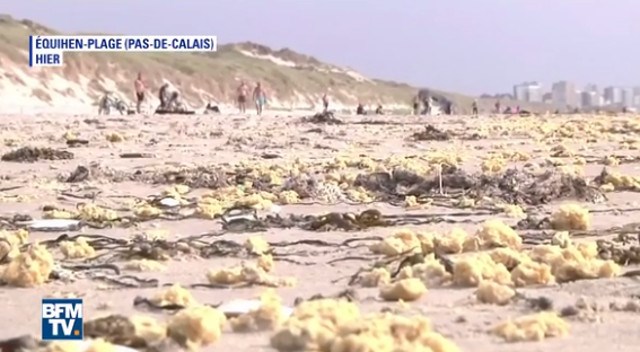 Тези мистериозни неща, много наподобяващи гъби или парчета полиуретанова пяна, понастоящем са превзели бреговете на Ламанша в северния френски департамент Па дьо Кале.
