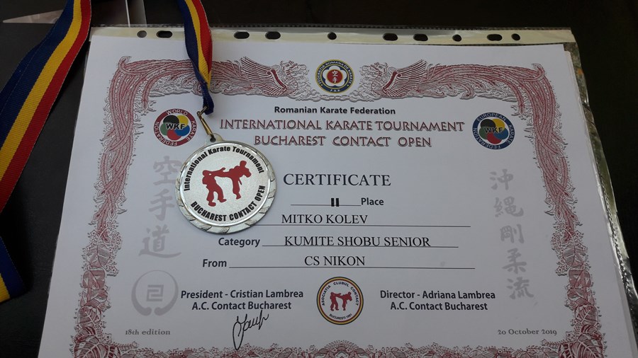 Митко Колев грабна сребърен медал от турнир по карате в Букурещ