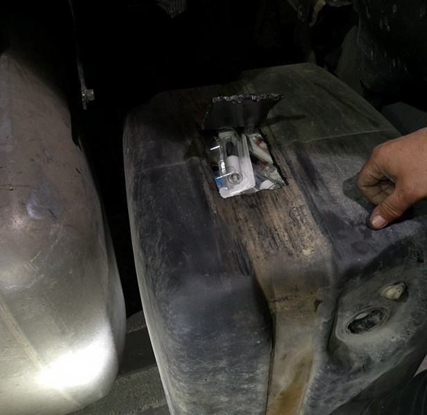 Превозното средство е селектирано от митническа мобилна група за щателна проверка, при която, в резервоара за съхранение на горивна добавка, са открити 255 опаковки с медикамента „Humatrope“ - хормон на растежа. В хода на проверката, във фабричните кухини на вратите на шофьорската кабината, са открити и 130 кутии (2 600 къса) цигари марка „Karelia“, всички без акцизен бандерол.