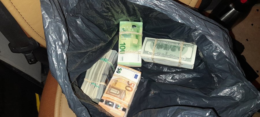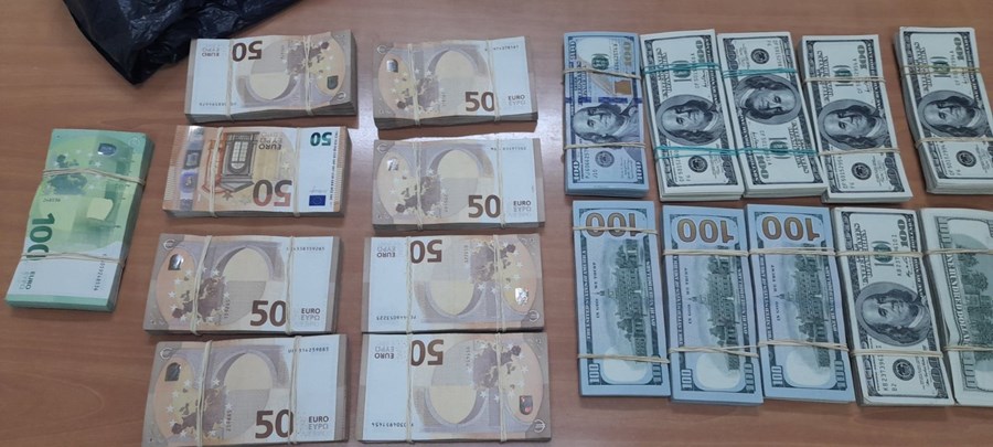 Общата сума на намерените пари е 100 000 долара и 50 000 евро, чиято левова равностойност е около 280 000 лева.