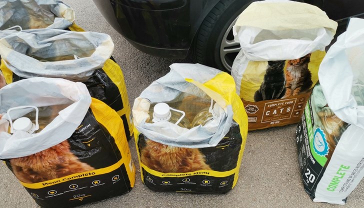 Митническите служители от ТД Митница Русе задържаха 120 литра спирт, укрити в пакети от храна за животни в багажника на лек автомобил
