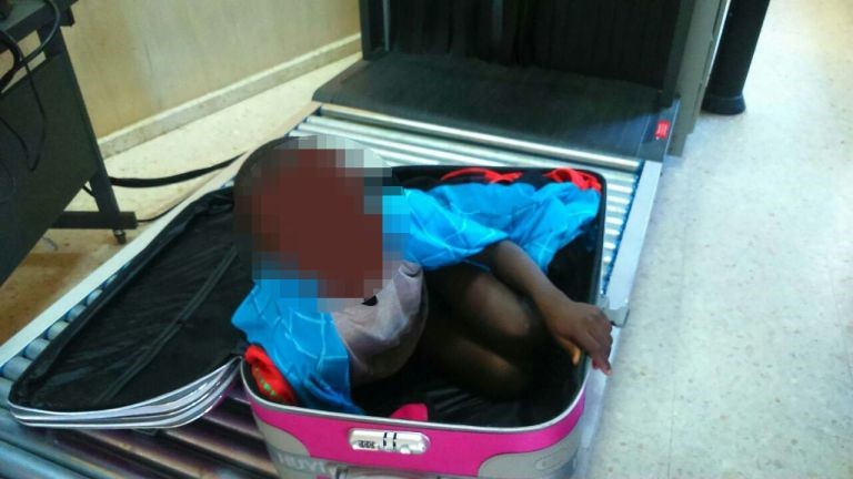 Момчето подало главата си от куфара и казало: „Здравейте, казвам се Абу”. Полицията разследва случая. Предполага се, че бащата на 8-годишното африканче вече е арестуван.
