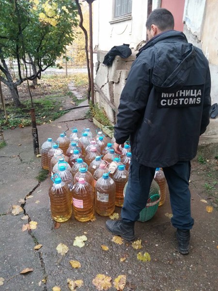 Други 560 литра ракия задържаха екипи на митническите мобилни групи, съвместно със служители на Митница Югозападна, при проверка в района на Кресна, на 16.11.2017 г. Проверен е частен имот - къща с двор, където в избено помещение под гаража са открити открили 2 ПВЦ съда с вместимости от по 50 литра и 46 броя ПВЦ съдове по 10 литра, съдържащи течност с мирис на етилов алкохол (ракия), общо 560 литра. За алкохола, в рамките на проверката, не са представени документи за платен, обезпечен, начислен акциз. Взети са проби за лабораторен анализ.