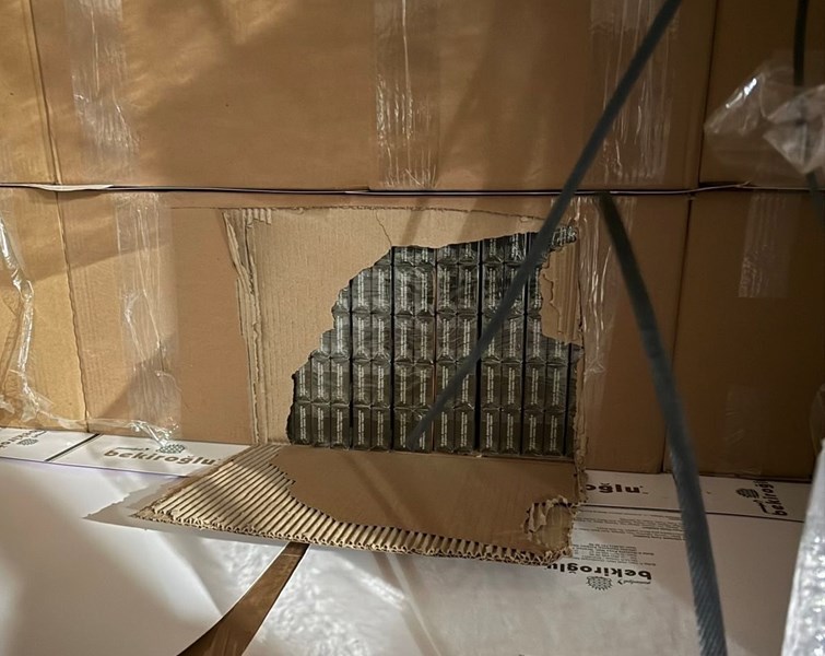 При рутинна проверка със специализирана рентгенова техника, митническите инспектори забелязали зони с подозрителна плътност в товара. Последвалият щателен физически контрол разкрил, че в шест от палетите са укрити контрабандни цигари по метода "тапа" - отвън били подредени декларираните колети със стока, а във вътрешността им били скрити кашони с цигари.
