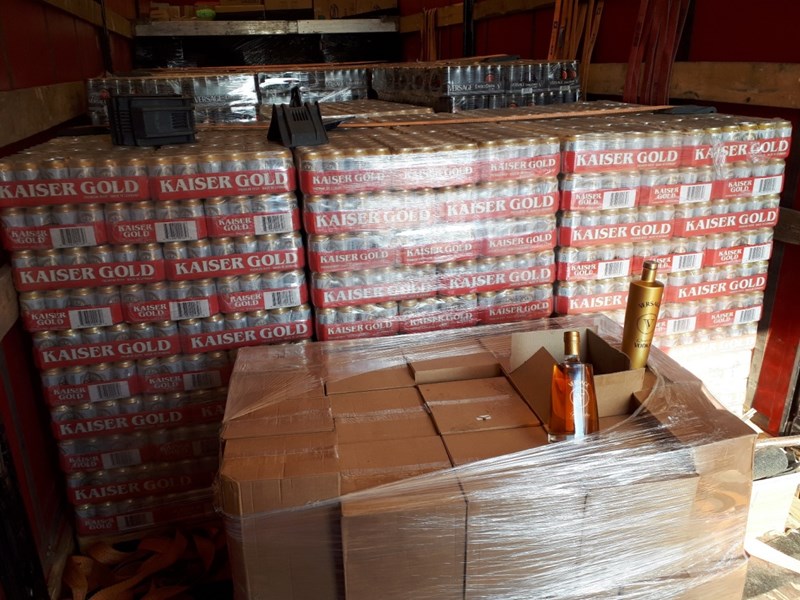 В хода на проверката са открити 4 палета, натоварени с 8 640 броя кенчета с бира от 330 мл, марка „KAISER GOLD". В кашони са открити и 222 броя бутилки водка и уиски от марката "VERSAGE".