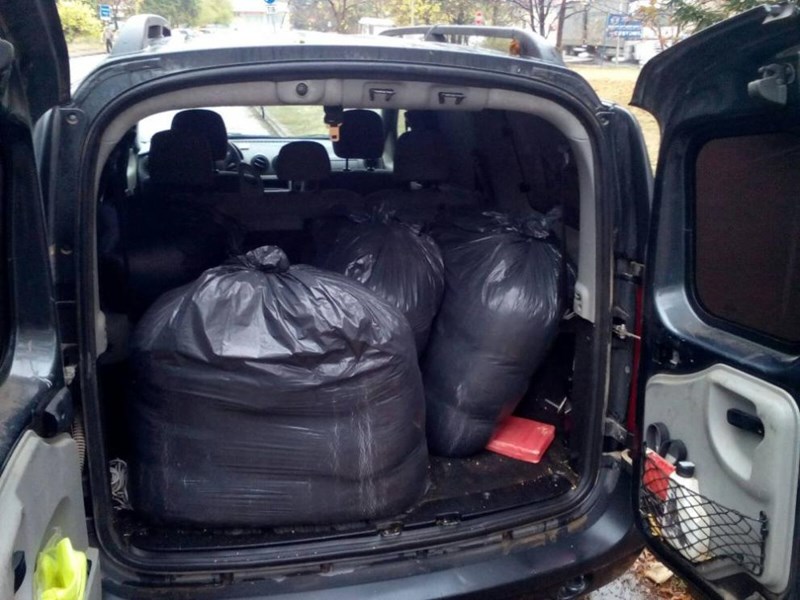 В багажното отделение са открити черни найлонови чували, пълни с различни разфасовки нарязан тютюн за пушене с общо тегло 70.2 кг.