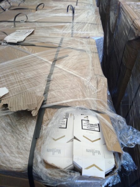 Служители на Митница Русе задържаха 20 палета с картонени опаковки за цигари на световно известна марка.