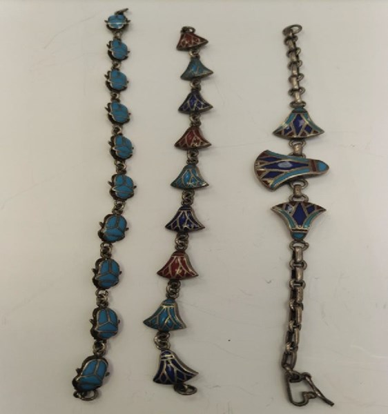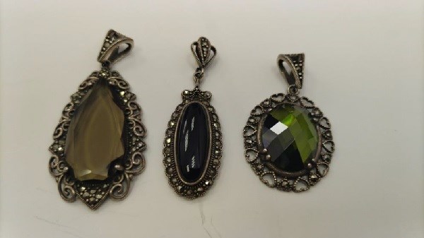 Сред обявените за продажба има и 10 бижута от сребро (проба 800), както и изделия от неблагородни метали и камъни, сред които масивни огърлици с метални елементи, бижутерийни колани и полисинтетични камъни, подходящи за изработка на бижута.