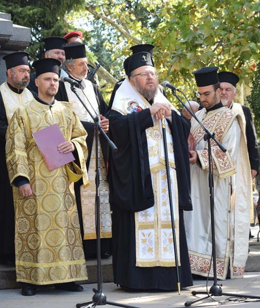 Негово Високопреосвещенство митрополит Наум се обърна с вдъхновено слово към присъстващите, припомняйки за саможертвата на хилядите български и чужди воини, загинали за нашата родина, като подчерта че днес повече от всякога българите трябва да бъдат единни за да живеят и работят в една силна и просперираща европейска държава.