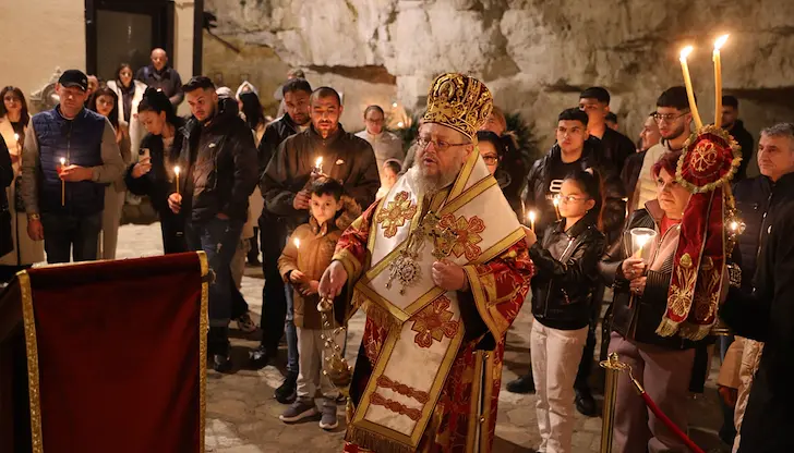 Вярващи посрещнаха Възкресение Христово в Басарбовския скален манастир край Русе, където празничната служба бе оглавена от Русенския митрополит Наум. Светата обител "Преображение Господне" събра стотици миряни, които успяха да отнесат в домовете си частица от Благодатния огън, пристигнал в града през границата с Румъния.