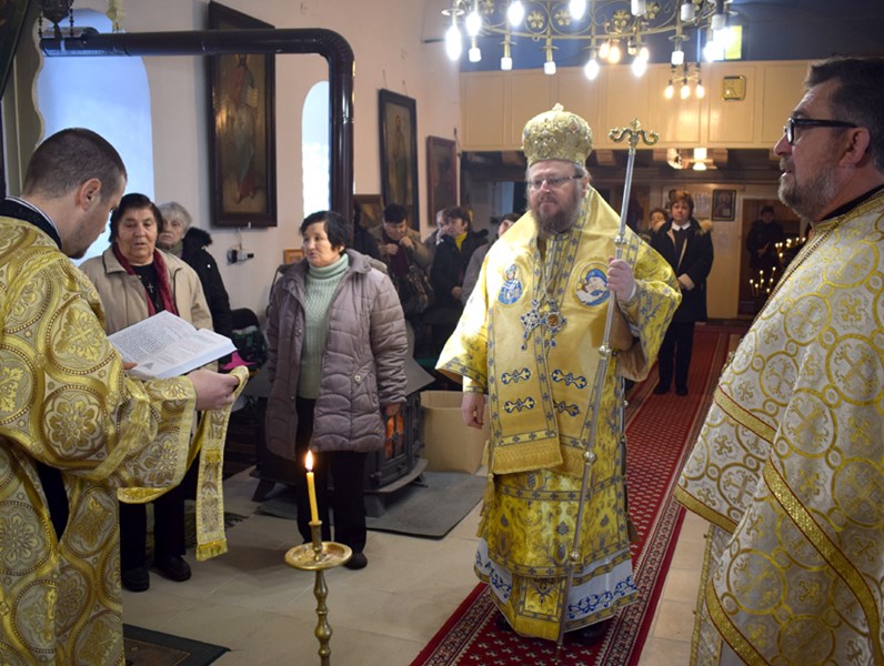 На архиерея съслужиха: прот. Димитър Димитров, свещ. Драгомир Панайотов и дякон Росен Георгиев. В края на богослужението владиката произнесе проповед и благослови християните, пожелавайки им здраве, мир и успешна нова година.