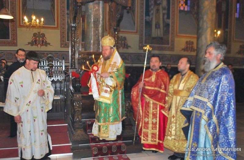 В съслужение на владиката бяха: ик. Георги Георгиев, свещ. Драгомир Панайотов и дяконите Валери Василев и Румен Трофилов.