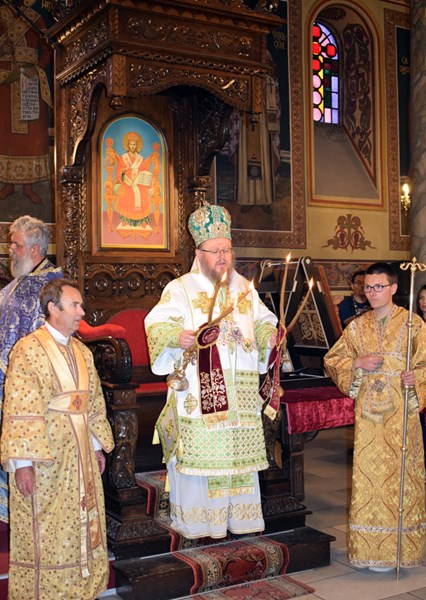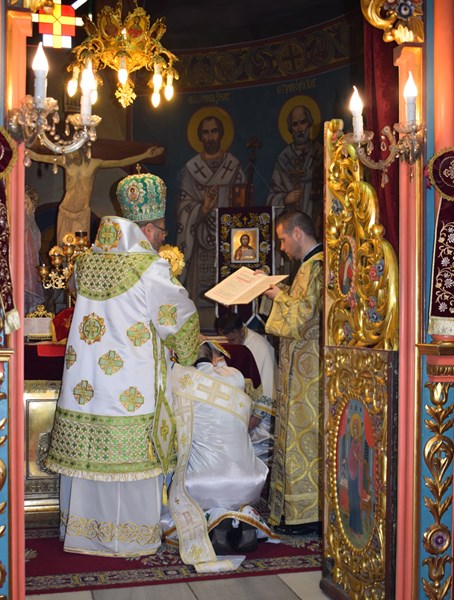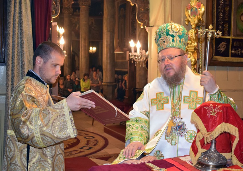 След литургията веднага беше отслужена и положената по Типик празнична вечерня, като по време на Великия прокимен Негово Високопреосвещенство осени християните с орехова шума, символизираща слизането на Светия Дух над апостолите.