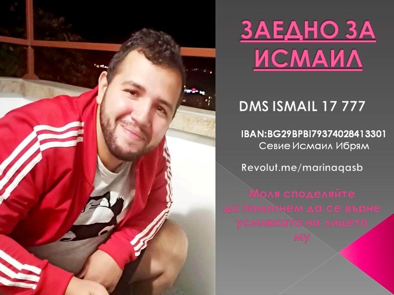 В България няма надежда за него, но професори от турска болница дават надежда. Сумата, която е необходима е от близо 100 хиляди лева и е непосилна за семейството. Чрез групата Заедно за Исмаил вече са събрани 50 хиляди.