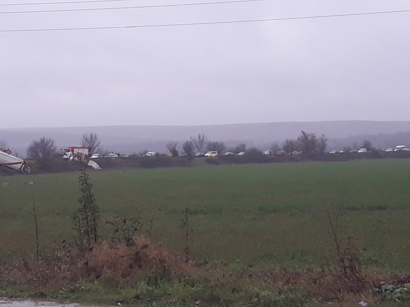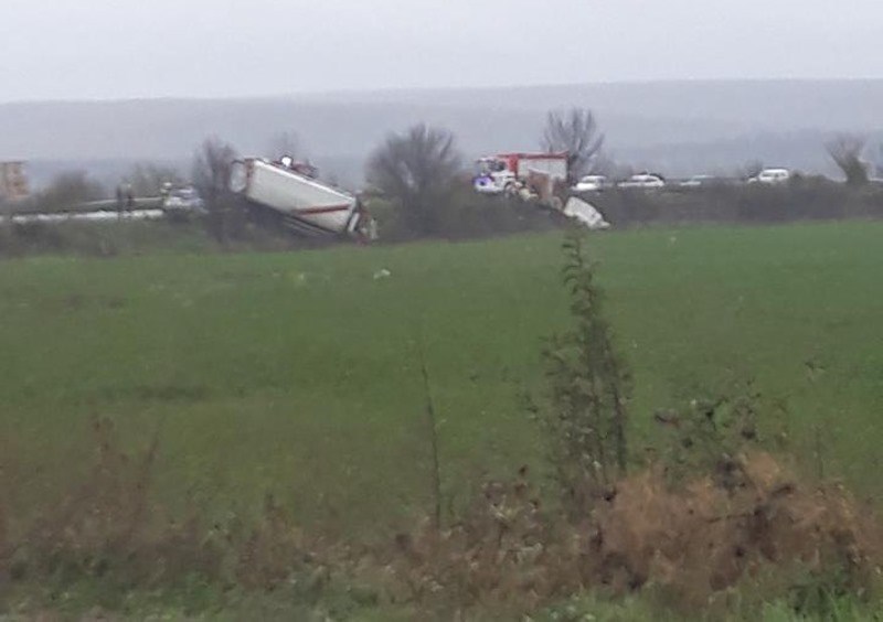 Инцидентът е станал малко преди 13:00 часа в района на село Старо Оряхово. Сблъскали са се камион „Мерцедес” и микробус „Ивеко”.