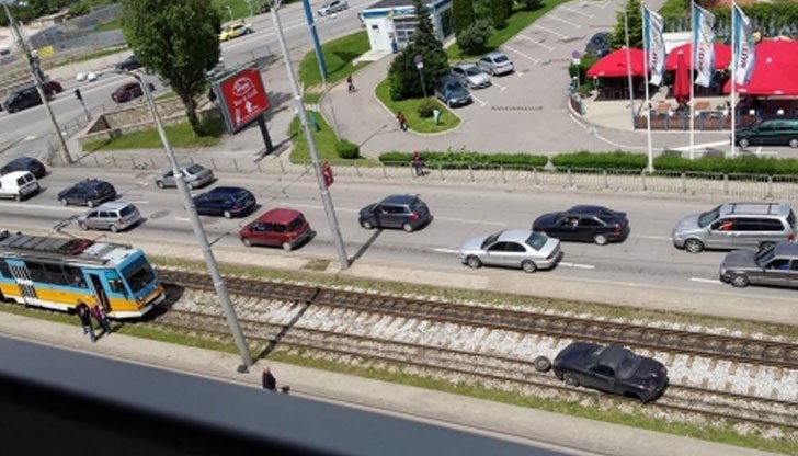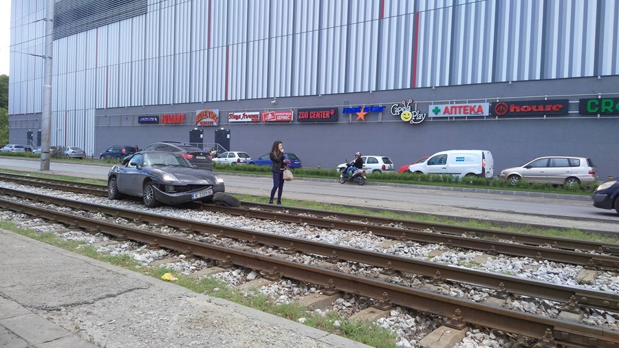 Млада дама кацна със своя черен кабриолет Fiat Barchetta върху трамвайните линии на бул. „Царица Йоана“. Инцидентът се е случил в близост до мола в едноименния квартал.