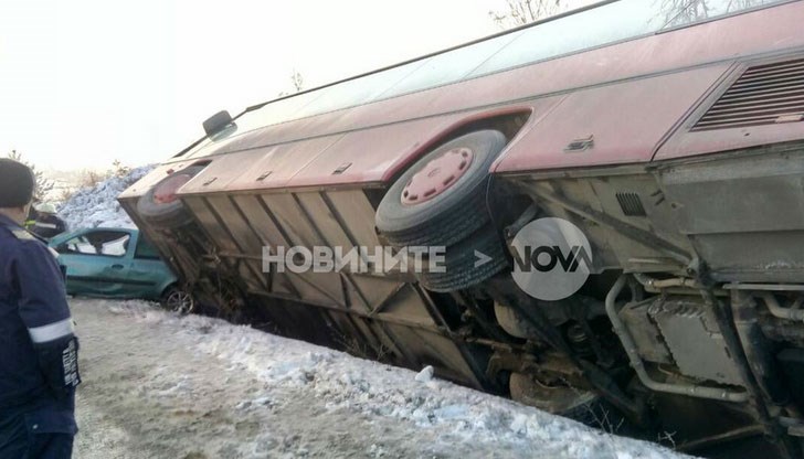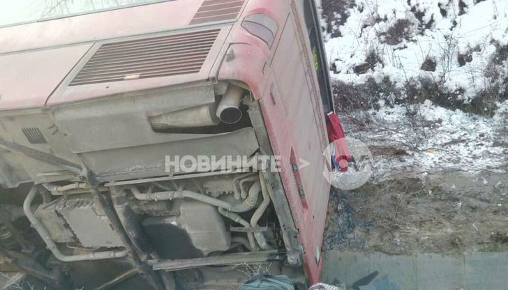 Автобус с 30-40 пътници се обърна в канавка край Драгичево.
