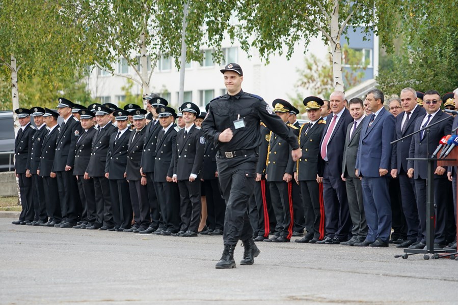„Освен добри пожелания, искам да ви споделя и най-ценния урок, научен през годините – да бъдеш полицай означава да покриеш високите изисквания на обществото, да понасяш високата отговорност, която хората и държавата са ти възложили. Това, което трябва да научите тук, е да бъдете всеотдайни в службата си към обществото, да се учите от грешките си и да сте обективни, включително и към себе си. Винаги търсете познанието, защото то е единственият начин да бъдете прави в действията си“, с тези думи министърът на вътрешните работи Младен Маринов се обърна към курсантите.