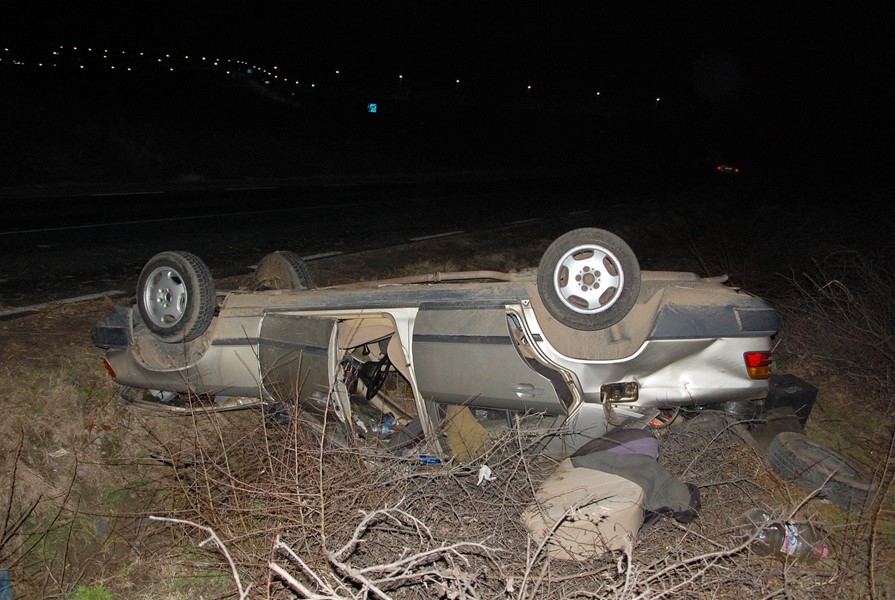 Автомобил "Мерцедес" се преобърна на десен завой снощи край Харманли.