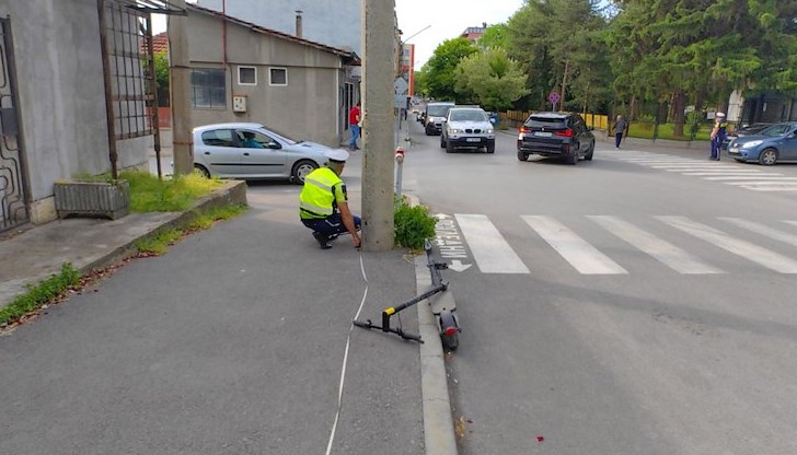 Произшествието се случи вчера в 15:34 часа в района на кръстовището с улица "Струга". Водачът на тротинетката марка "Xiaomi" е блъснат от 21-годишен шофьор на лек автомобил "Додж", който се е движил по улица "Солун" в посока булевард "Родина".