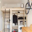 В противоположния край на стаята е леглото под тавана, което е разположено в импровизиран „втори етаж“. До него води стълба.