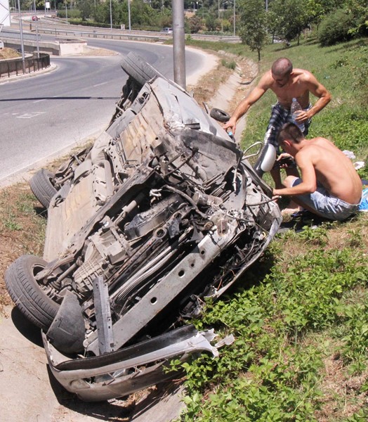 Причина за инцидента е висока скорост и невнимание. Това е довело до челния удар в стълб, поддържащ указателните табели и последвало преобръщане на колата.