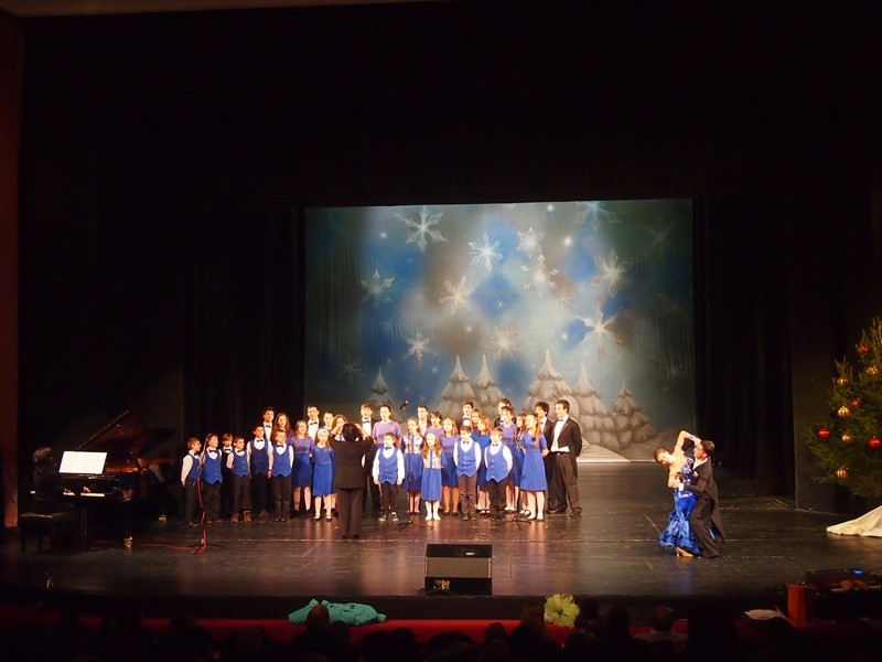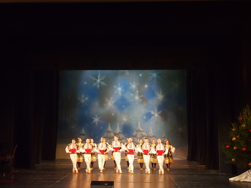 С нежна музика и новогодишен валс се представиха хор „Свети Георги Победоносец”, а приказният фон беше допълнен от танцова двойка от клуб „Настроение”. Най-многобройната група в Младежки дом – „Импулс”, се радва на бурни аплодисменти за своя „Коледен танц”, в който се включиха близо 100 балерини от танцовото студио. За доброто настроение в залата допринесоха и танцьорите по спортни танци, които представиха Румба и Пасо добле. Малчуганите от вокална група „Приста” нажежиха обстановката и повдигнаха още повече коледното настроение с песните „Тази смълчана нощ” и „Коледна молитва”.