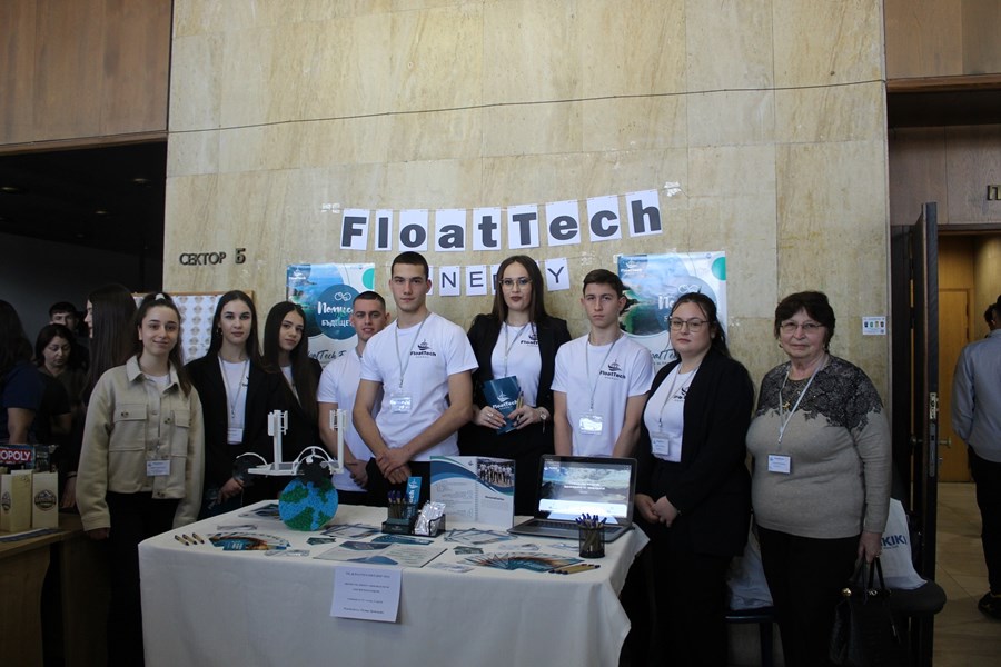 Първо място спечели "ФЛОАТТЕХ ЕНЕРДЖИ" ООД на ученици от 11 "г" клас с ръководител Татяна Димитрова. Тяхната иновативна система съчетава вода, слънце и вятър за производство на чиста енергия с минимален въглероден отпечатък.