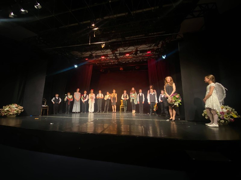 Пиесата „Сцената е моят дом - театрални упражнения“ е по текст, сценарий и постановка на ръководителя на групата Мина Маринова и разглежда пътят на детето до сцената и първото представление, любовта към театъра, вдъхновението, което съпътства всяко изкуство, и очарователната магия на паралелен живот в „театралната кутия“. Тя включва елементи и на музикален шоу-спектакъл.