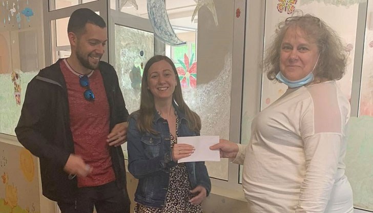 Младото семейство Шурелови връчиха сумата от 600 лв. на директора на ОДУ „Слънчо” Милена Неделчева, като с парите ще бъдат закупени електростимулатори за двете услуги, пособия за работа с децата и сензорни модули.