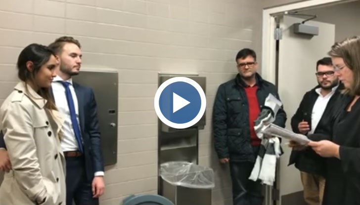 Тогава било взето решението сватбата да продължи в тоалетната и съдия Кейти Гъмър нямала нищо против.