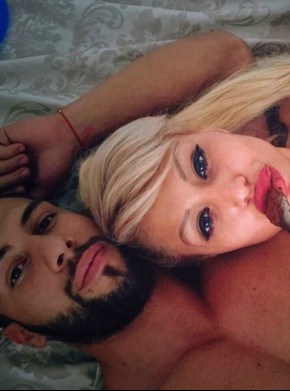 Едната ѝ гърда е омазана в сладкото изкушение, другата Джулиана e прикрила с ръка, а любимият ѝ е щракнал еротичното селфи, пише BGLife.