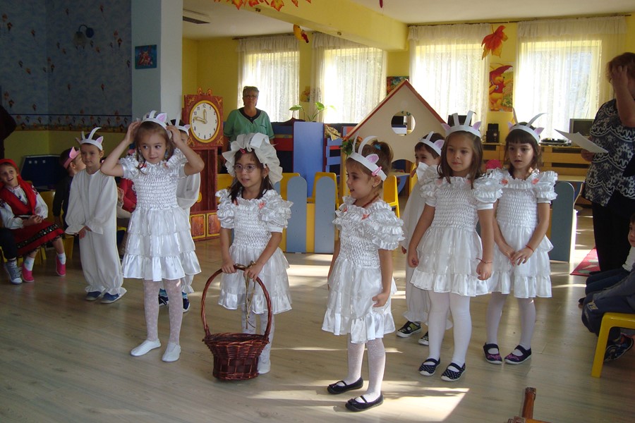Децата от подготвиелните групи се включиха активно в Седмицата на четенето, като драматизираха заучените в детската градина приказки „Вълкът и седемте козлета“ и „Сливи за смет“.