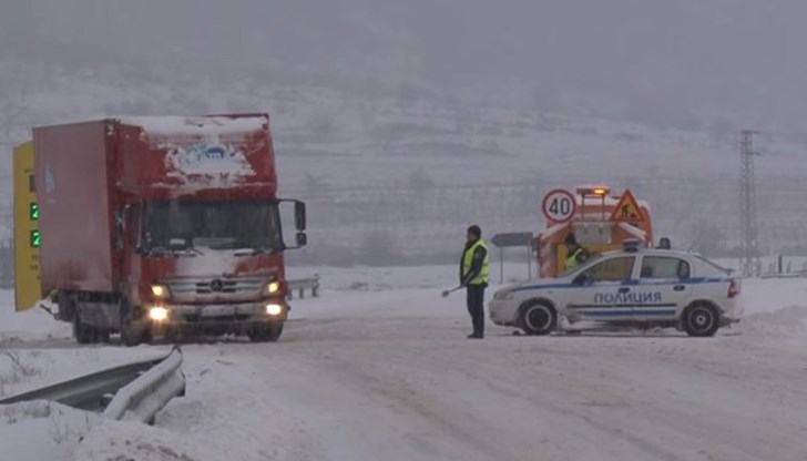 Временно се ограничава движението на тежкотоварни автомобили над 12 т по АМ „Струма“ от пътен възел „Бобошево“ само в посока София поради снегопочистване.