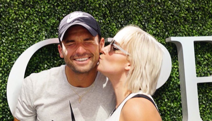 Блондинката публикува в профила си в социалните мрежи снимка с българина. На нея тя целува Димитров секунди след като са приключили с интервюто за специализирания тенис канал, на който сътрудничи, предаде БТВ.