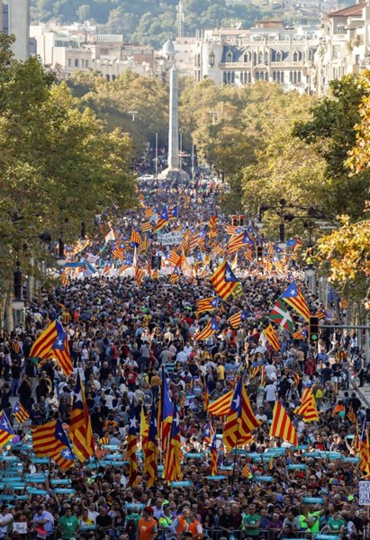 Протестиращи от цялата страна се събират в Барселона, за да се включат в голямата демонстрация в защита на правата и свободите.