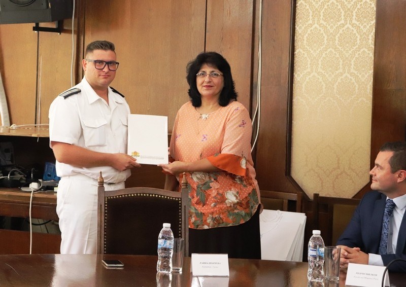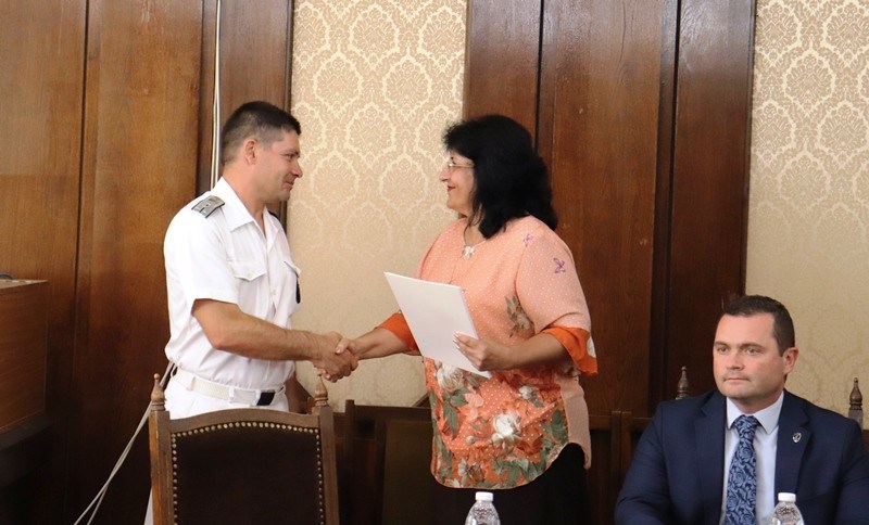 Те бяха удостоени с грамота на областния управител Борислав Българинов за проявени всеотдайност и професионализъм, за постигнати високи резултати в изпълнението на служебните задължения и по случай 142 години от създаването на ВМС на Република България. Наградените са капитан-лейтенант Георги Зайранов, който е помощник диригент и главните старшини Живко Иванов и Руслан Драганов, които са пък оркестранти. Тримата мъже получиха също парична награда и плакет от кмета на общината Пенчо Милков, който подчерта значението на военния флот не само в сферата на сигурността, но и като институция, пазеща специфичния български дух.