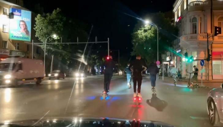 Варненец сигнализира във Фейсбук групата „Забелязано във Варна“ за няколко момчета, управляващи електрически тротинетки по средата на булевард в Морската столица.