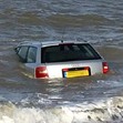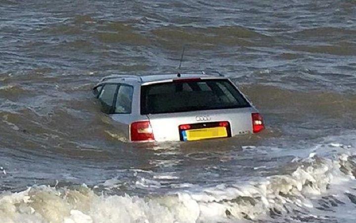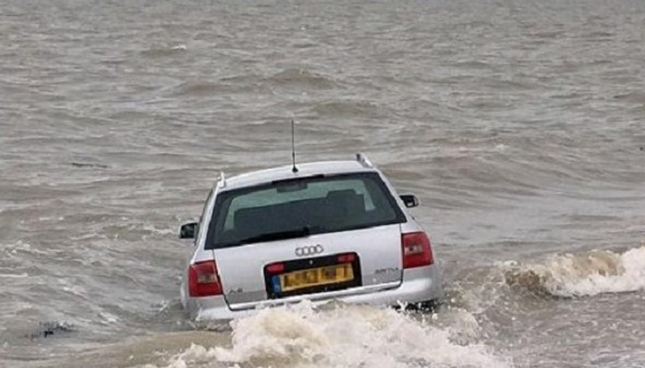 Но докато шофьорът бил на разходка, приливът дошъл и колата бързо се оказала под вода. През това време минувачите гледали невярващо как вълните се плискат в покрива и прозорците.