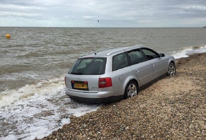 Водачът оставил сребристия автомобил върху пясъка, на безопасно, според него, място, на остров Шапей, Кент.