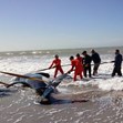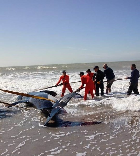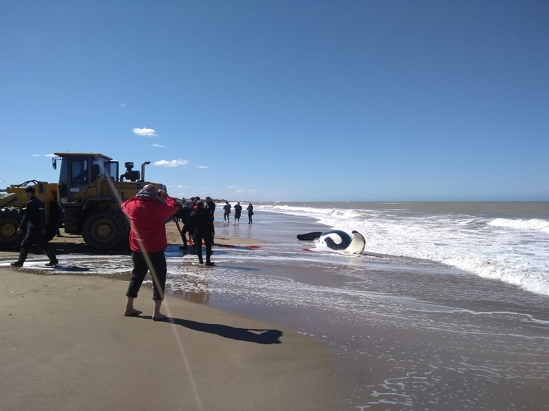 Седем косатки бяха изхвърлени на брега близо до курортния град Мар дел Плата. Една от тях е загинала, съобщава телевизионният канал TN.