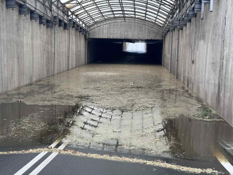 Силният вятър е нанесъл щети и на сградите в центъра на града. Витрината на магазин в централната част на Бургас е счупена от бурята, причинявайки допълнителни проблеми за собствениците и клиентите. Подземната улица, която минава под централния площад, е наводнена и затворена за движение, усложнявайки ситуацията още повече.