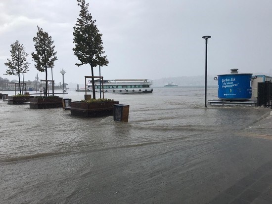 Заради дъжда за кратко бяха спрени фериботните връзки между азиатската и европейската част на града. От кметската управа издадоха предупреждение към гражданите да бъдат внимателни заради лошото време.