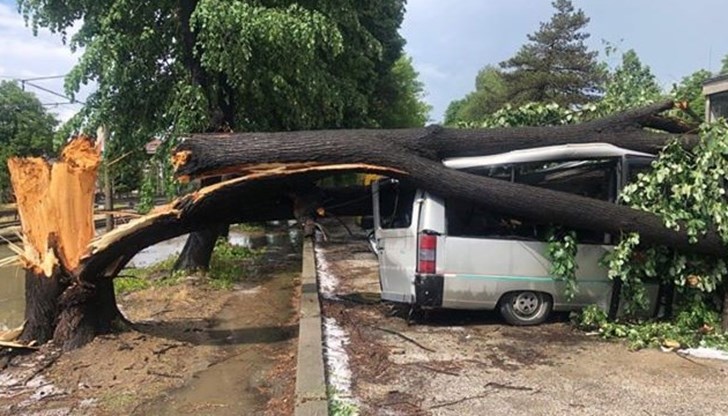 Дърво падна върху бус.