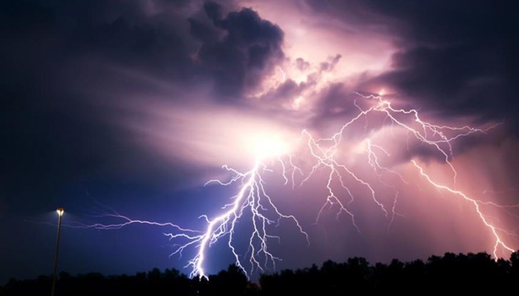 Мълния е разцепила дърво, чиито клони са паднали върху паркирани автомобили