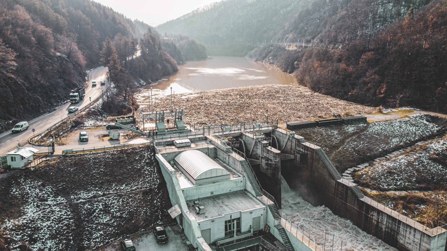Придошлите води на река Искър довлякоха цял „остров“ от клони и вплетени в тях отпадъци до ВЕЦ по реката
