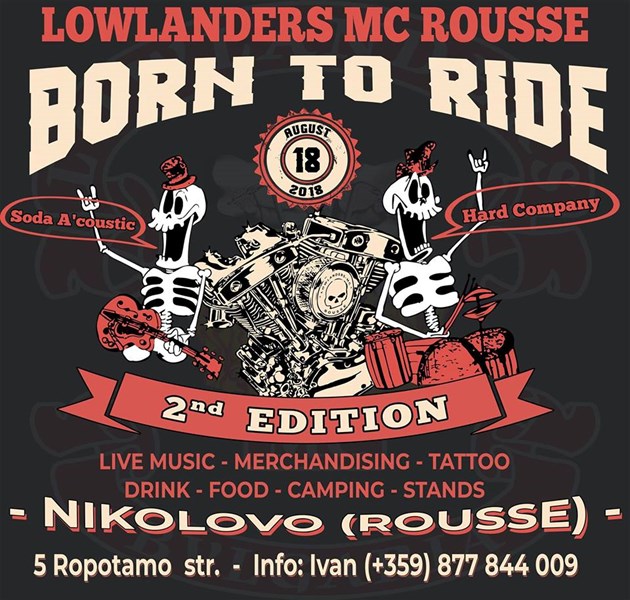 MC клубове от Сърбия, Македония, Италия и Румъния ще посетят второто издание на Born to Ride. В петък домакините ще посрещат своите гости, а същинският купон ще е в събота (18 август). Тогава ще свирят Soda A'coustic.