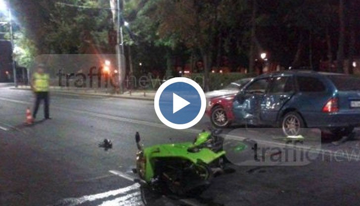 Движението на превозните средства, които идват от центъра към кръстовището с булевард Руски е било спряно. Каската на водача е деформирана, а около нея има много кръв, което говори, че ударът е бил силен.