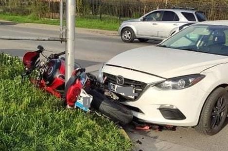 Според очевидци той е изпреварвал, когато леката кола е правила ляв завой. Веднага на мястото е пристигнал екип на Спешна помощ и полиция. Мотористът се е блъснал странично в Маздата. При пристигането на лекарския екип той е бил с обилно кървене от лицето.
