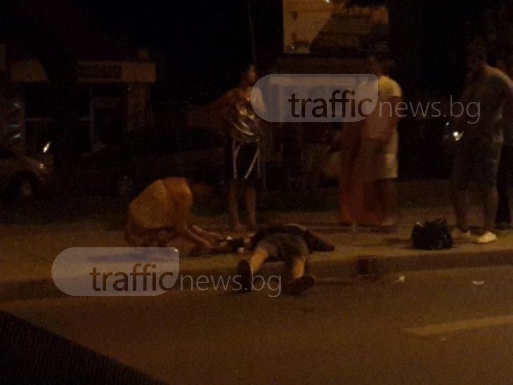 Около пострадалия са се събрали хора, опитващи се да помогнат. Лекарка е спряла автомобила си, за да окаже помощ. Премерила е кръвното налягане на моториста, който все още е в съзнание, но губи много кръв.